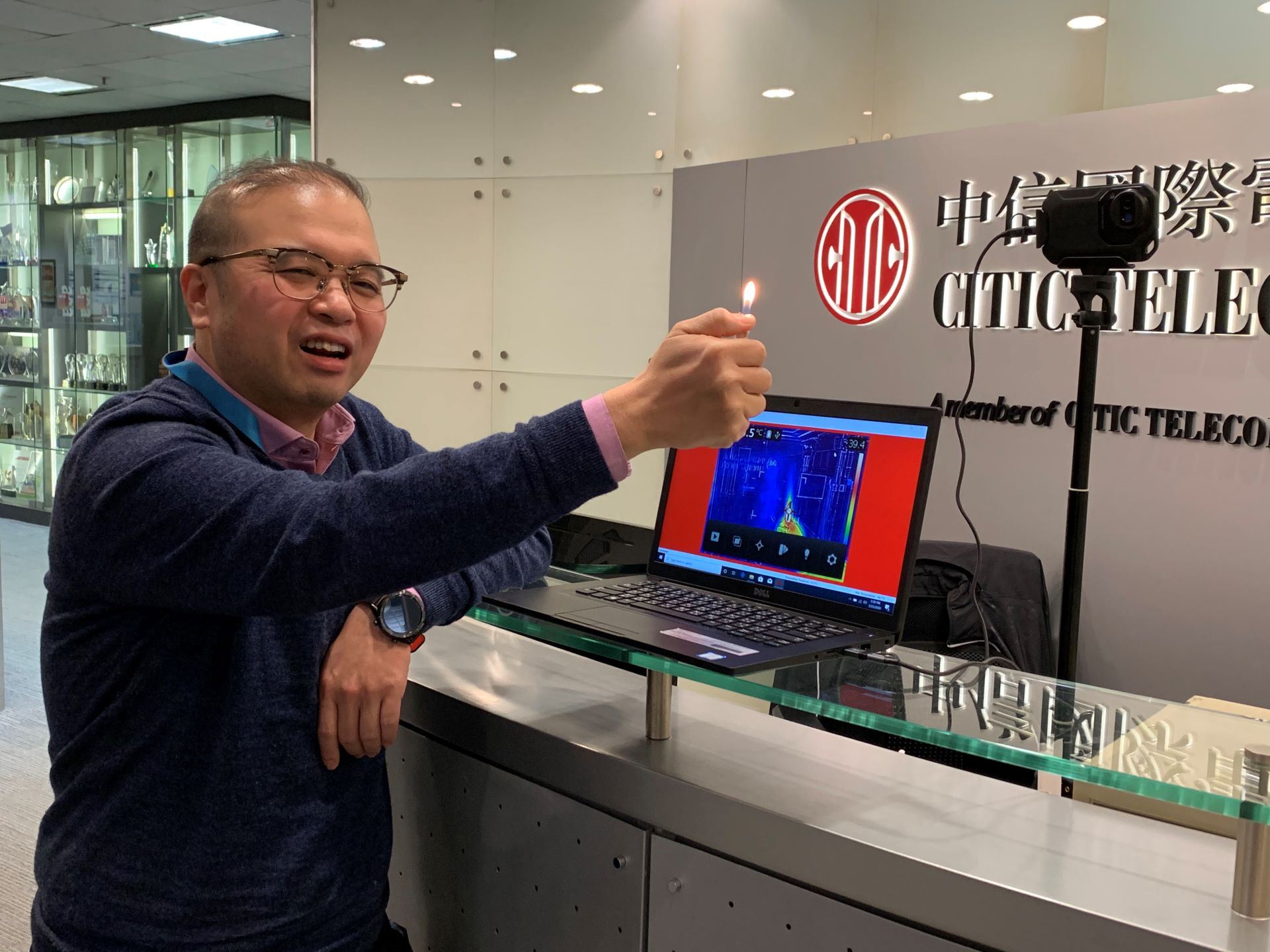 Leading the innovation team is Mr. Daniel Kwong, Chief Information and Innovation Officer of CITIC Telecom CPC. “Many places need to check the body temperature of every visitor with a handheld electronic thermometer, and it may increase the risk of cross-infection. However, a professional body temperature monitoring system is expensive and in short supply, and it takes much time to install," said Kwong.