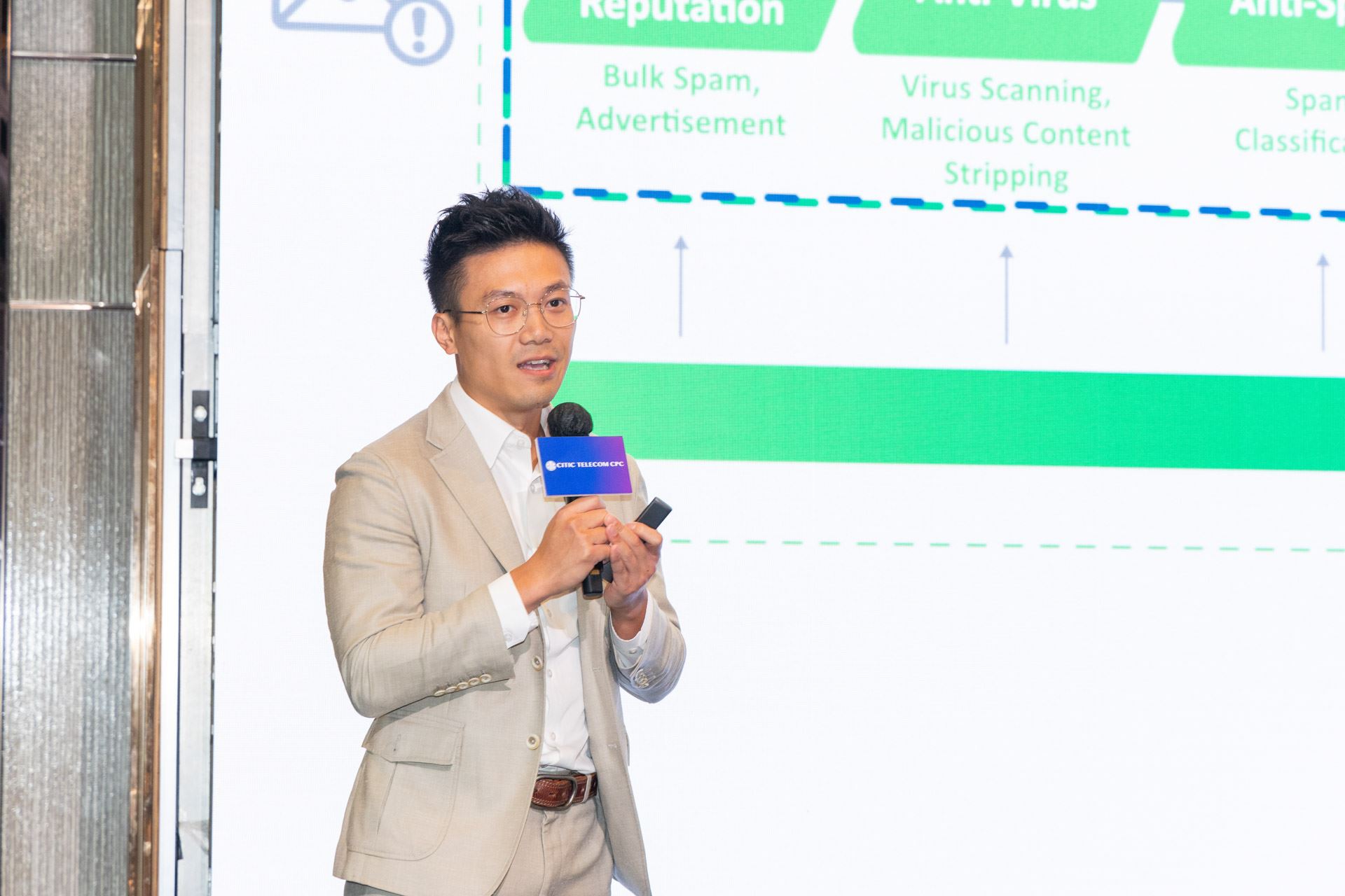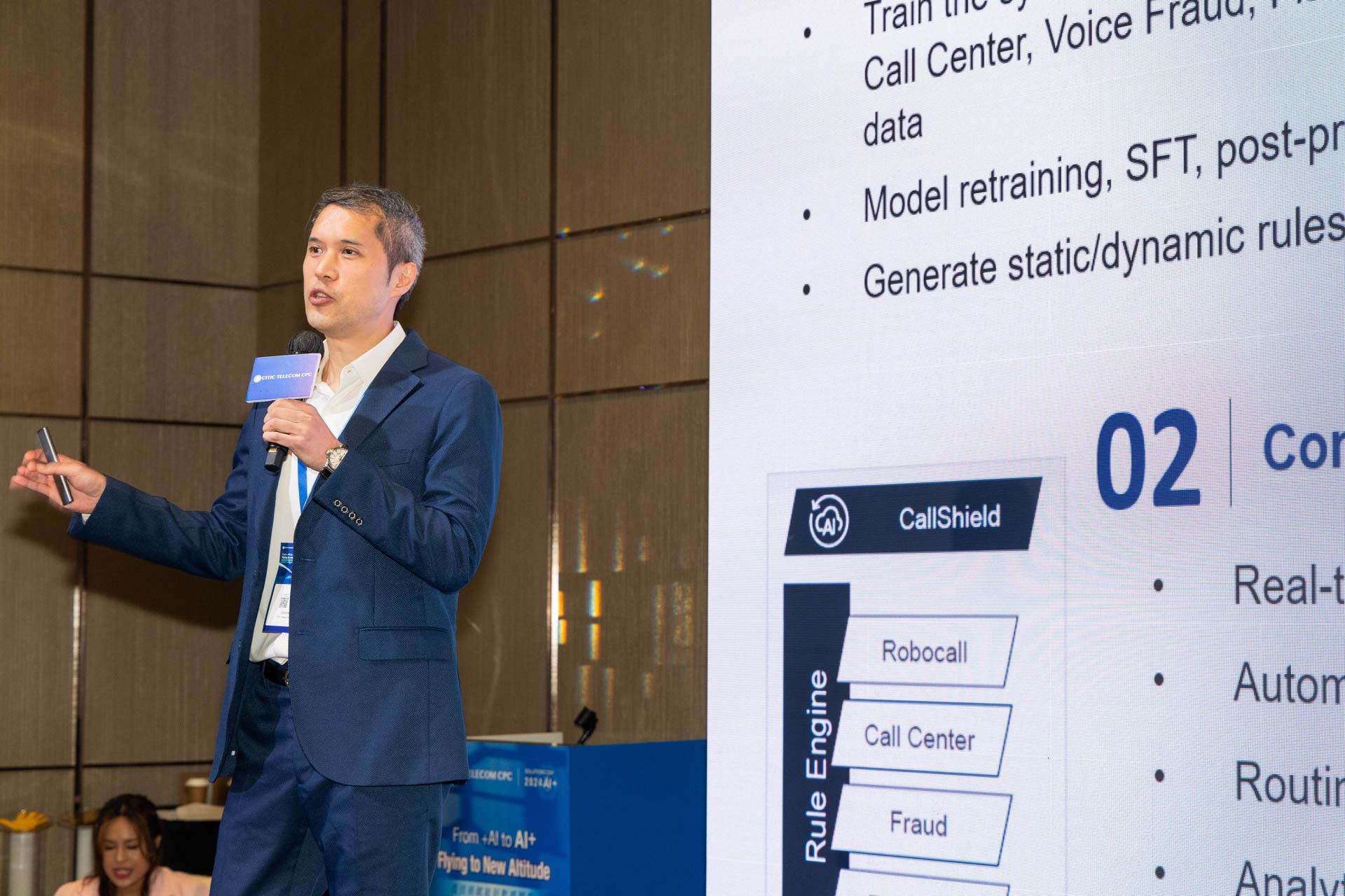 更多中信國際電訊數智發展部總監 Gabriel Shui 在 CPC Solutions Day 2024中,分享了屢獲殊榮、應對通話及SMS騙案的防騙解決方案,以及將AI融入解決方案後的強大能力,助力各合作夥伴、營運商、客戶以及普羅大眾預防詐騙事件發生。