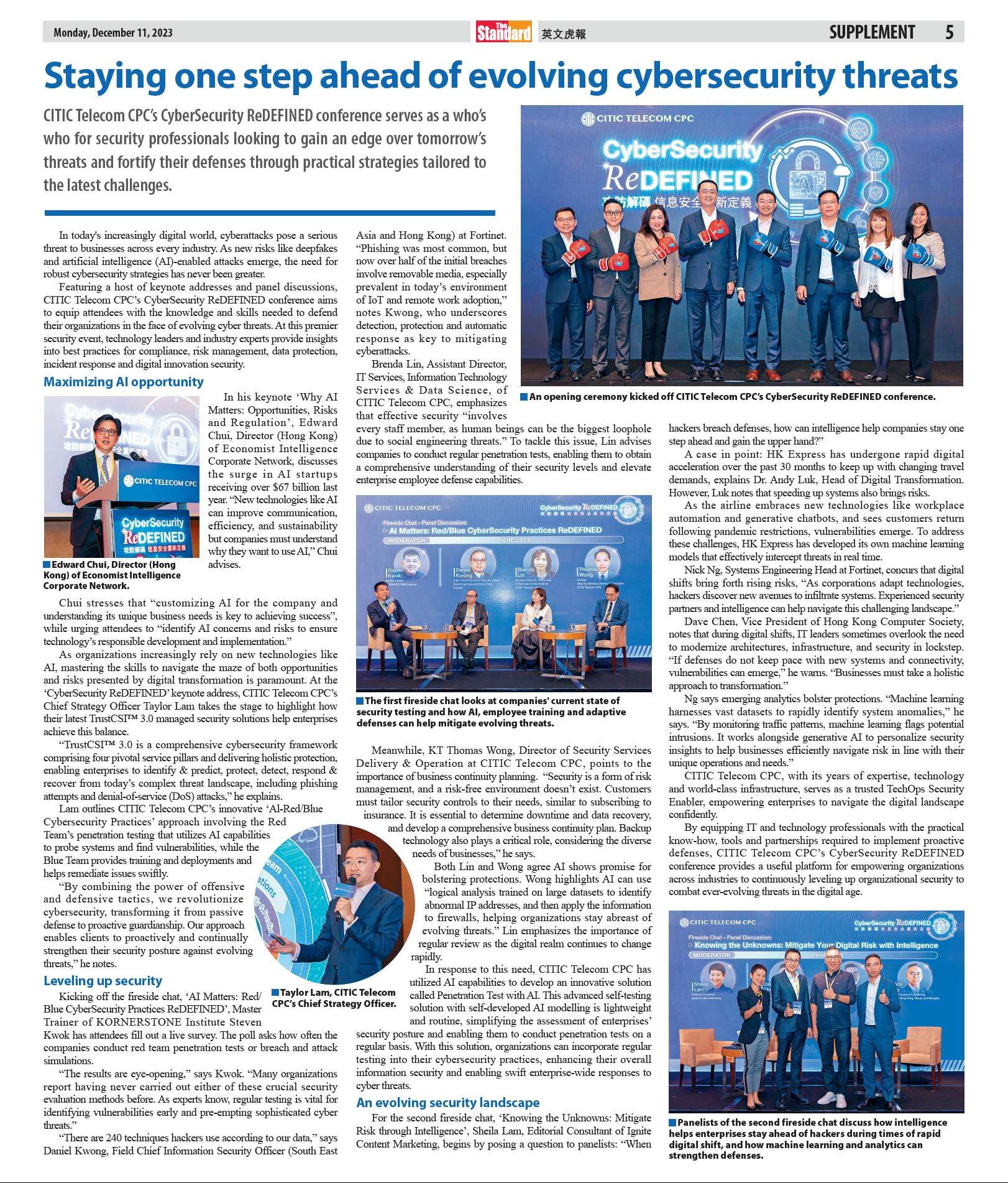 CITIC Telecom CPC’s CyberSecurity ReDEFINED conference serves as a who’s who for security professionals looking to gain an edge over tomorrow’s threats and fortify their defenses through practical strategies tailored to the latest challenges.